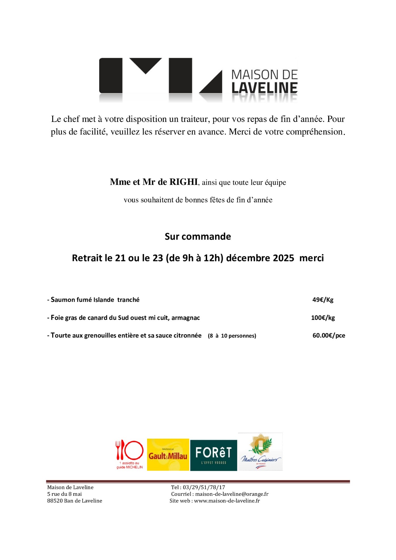 Réservez votre table ICI ou 03 29 51 78 17
